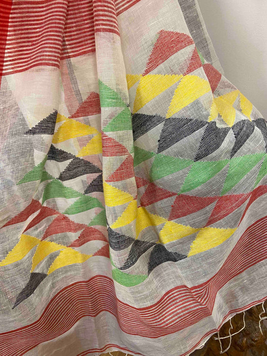 Yellow Red Silk Cotton Brocade Banarasi Saree