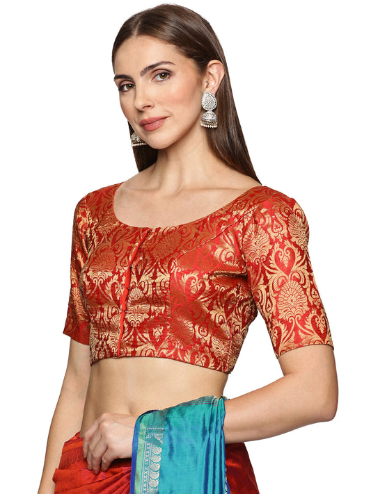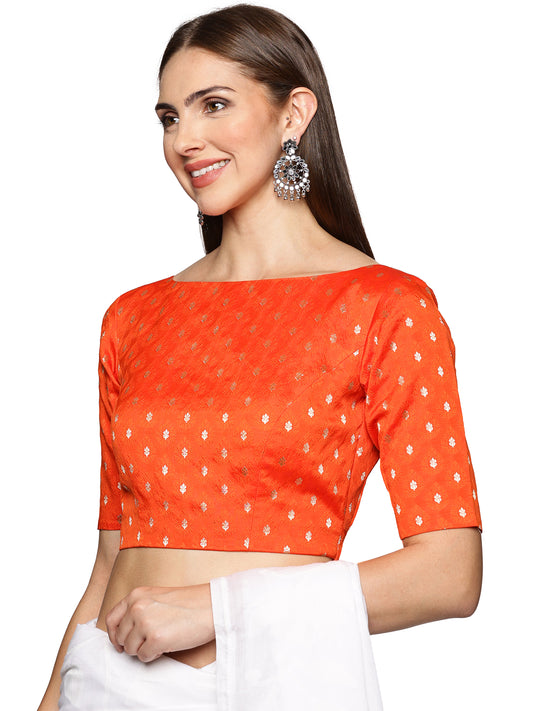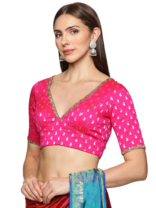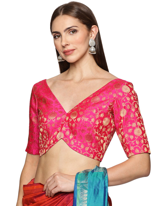 White and golden Banarasi Backless padded Blouses with Tie-ups