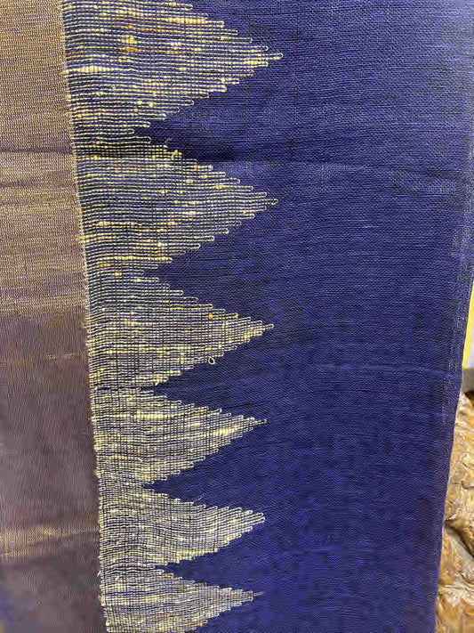 Sold outNavy Blue Jamdani Work Linen Saree