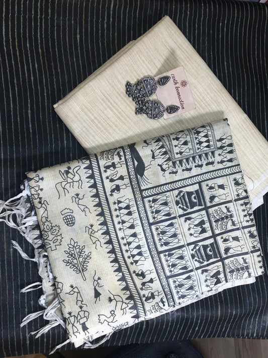 Tussar Madhubani suit set