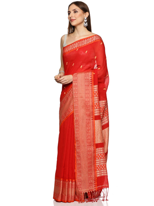Red Handwoven Khadi Cotton Saree