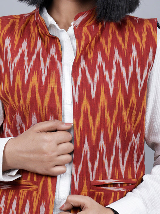 Maroon & Yellow Ikat & Ajrakh Reversible Jacket