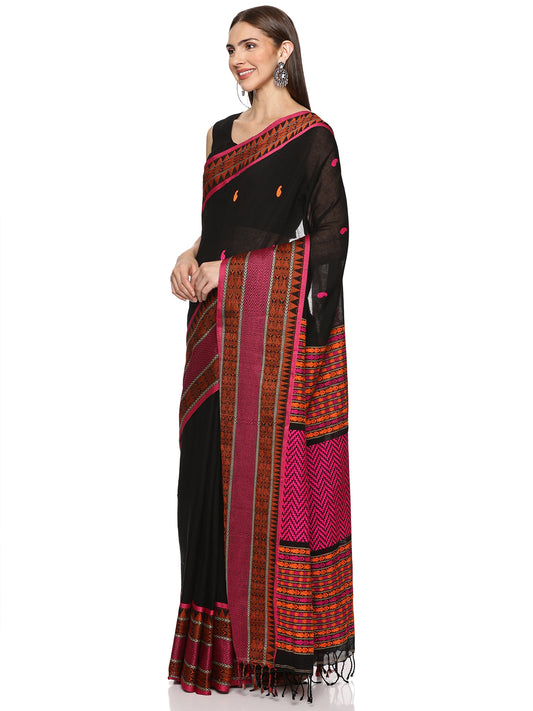 Black Pink Handwoven Khadi Cotton Saree