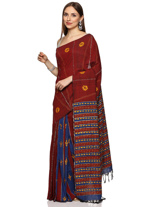 Maroon Kesh Kantha Saree