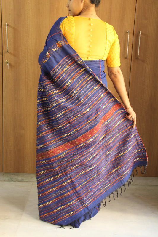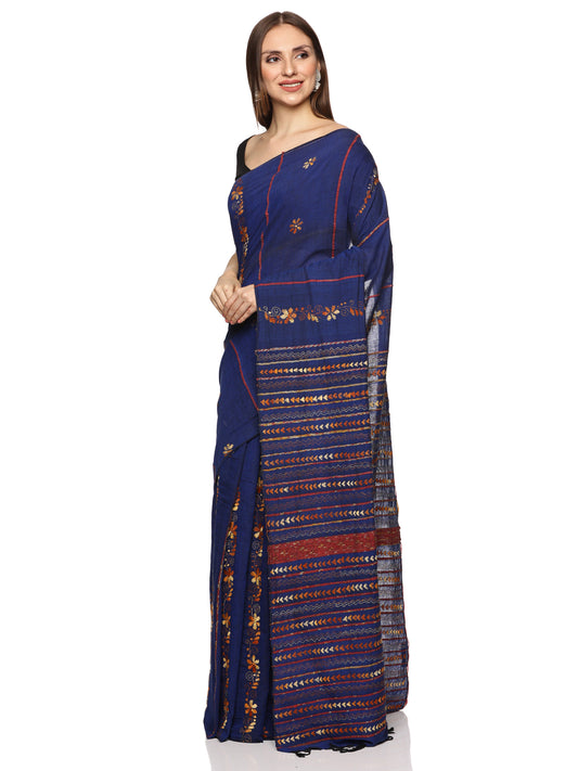 Royal Blue Kantha Embroidered Khesh Saree