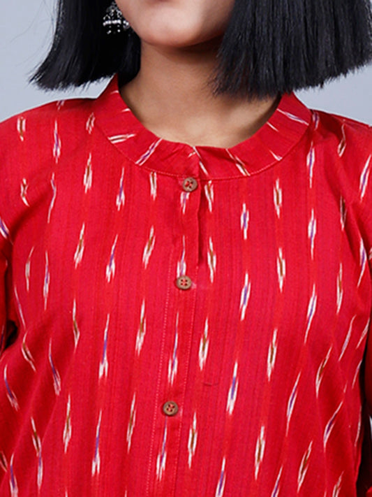 Sold outRed Ikat Long Kurthi Collar Kurta