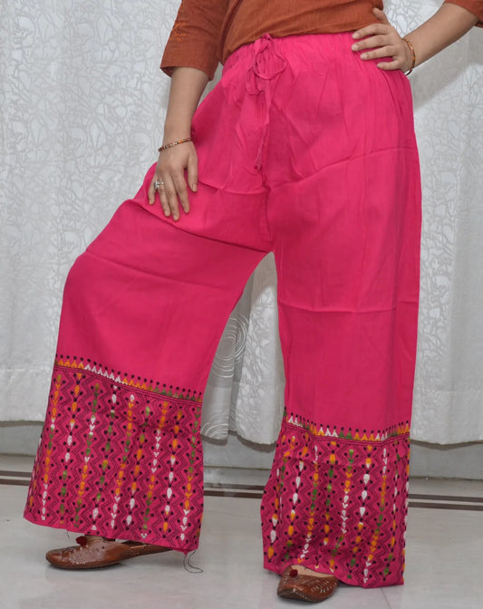Sold outPink Kantha Embroidered Palazzo