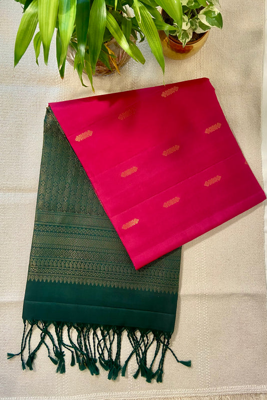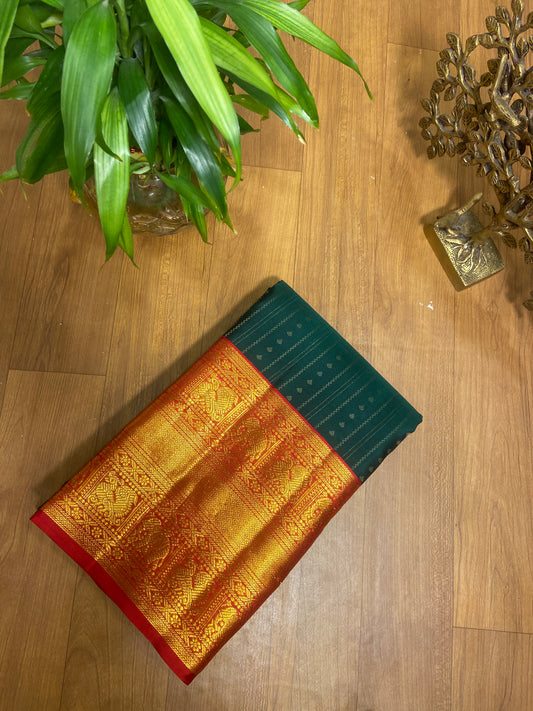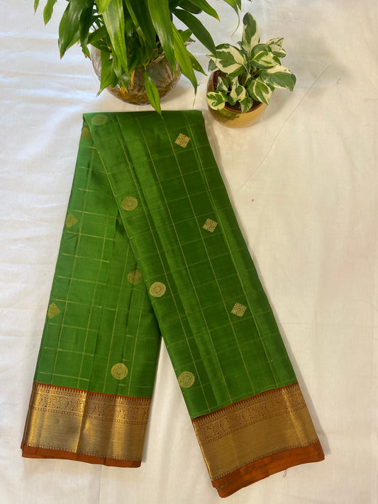 Kanjipuramm Pure Silk Alovera Jeri Chequed Saree