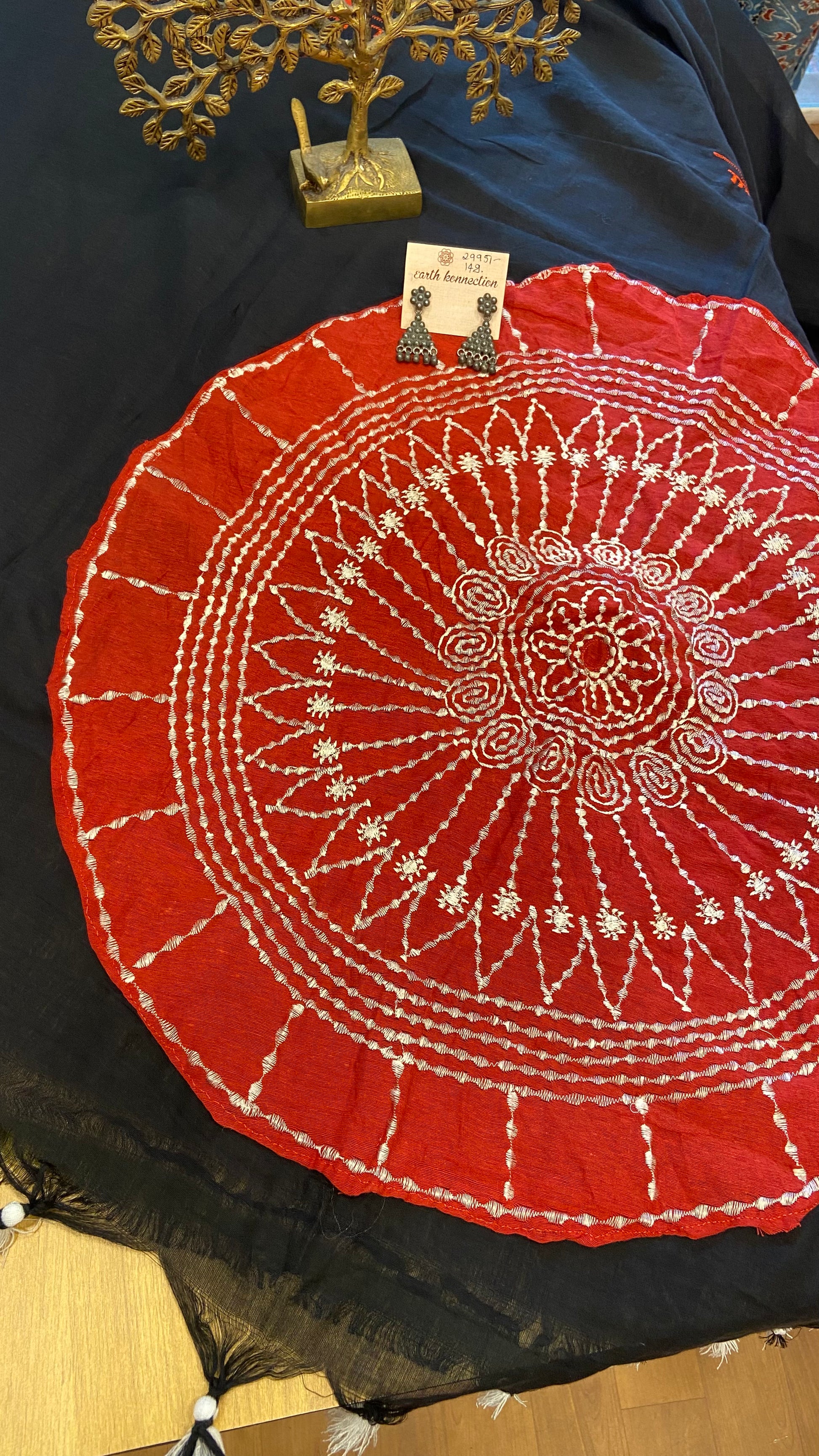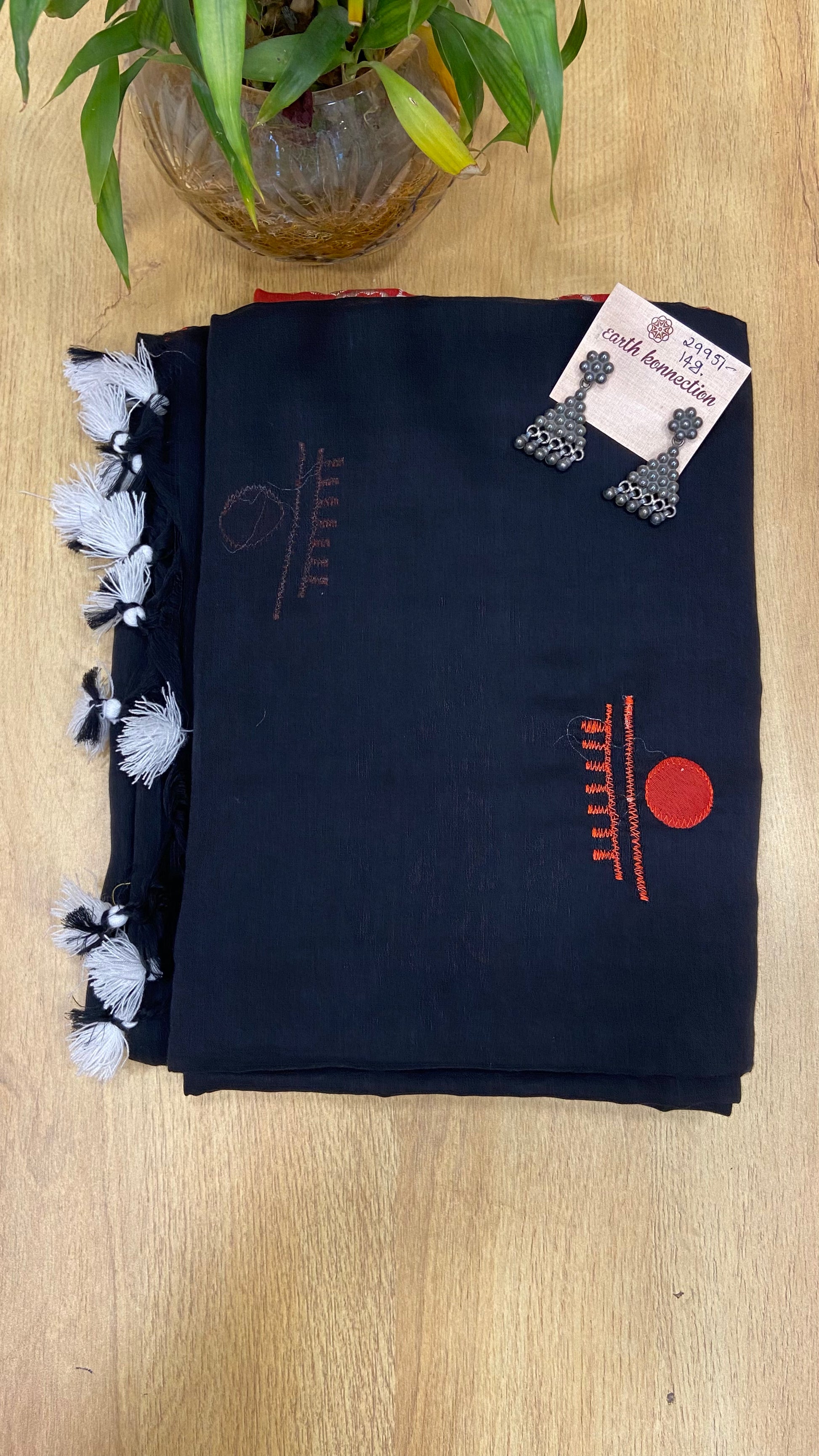 Appliqué sarees feature a textile design technique where pieces of fabric are attached to a base material to create intricate patterns. They are available in various materials and price points, suitable for both casual and formal occasions.