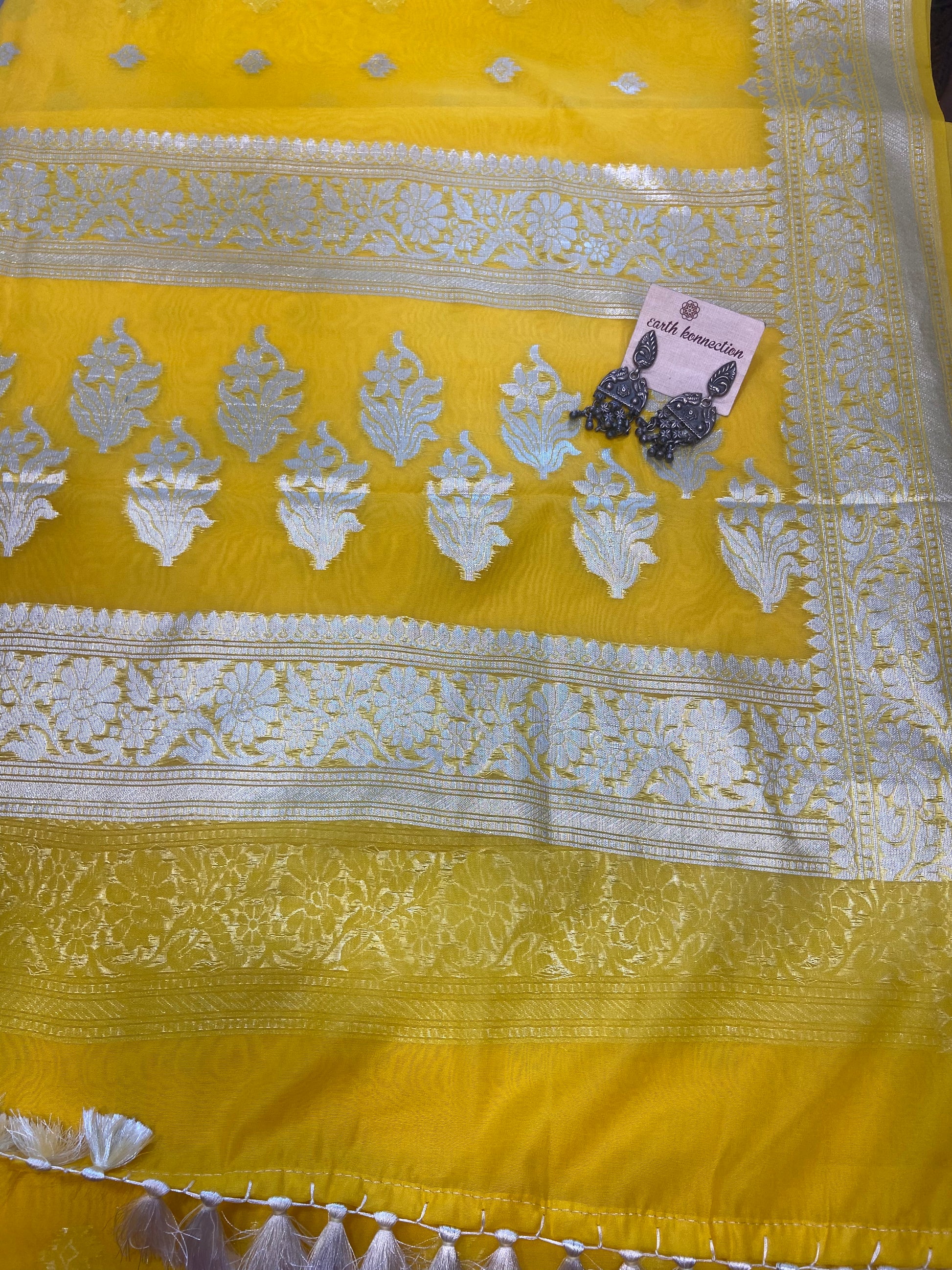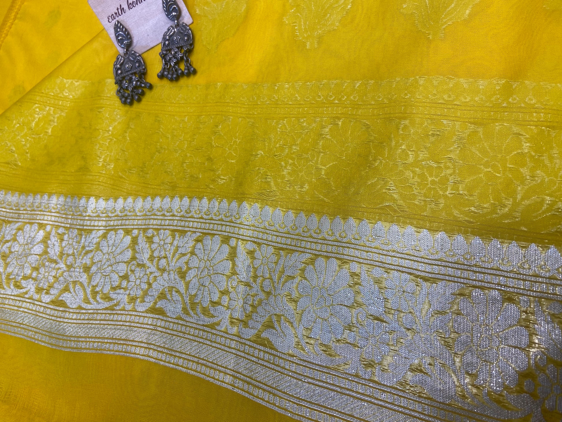 A Banarasi saree is a traditional Indian saree handwoven in the city of Varanasi (also called Banaras) and is known for its exquisite gold and silver zari brocade, fine silk, and rich, intricate embroidery. These elegant and opulent sarees, a symbol of Indian heritage, are often worn for weddings and special occasions due to their luxurious feel and intricate designs which can be inspired by Mughal art, flora, and fauna.