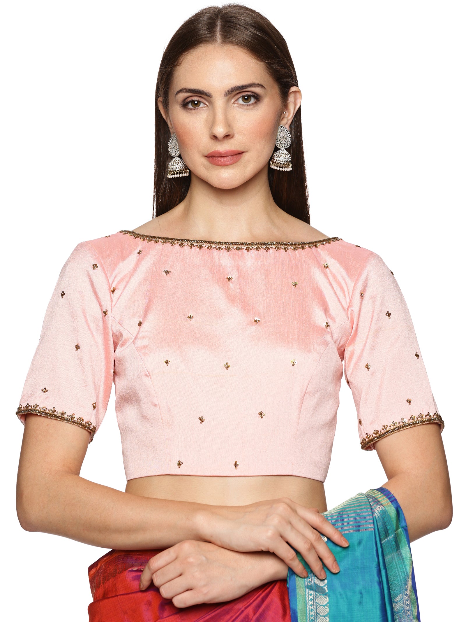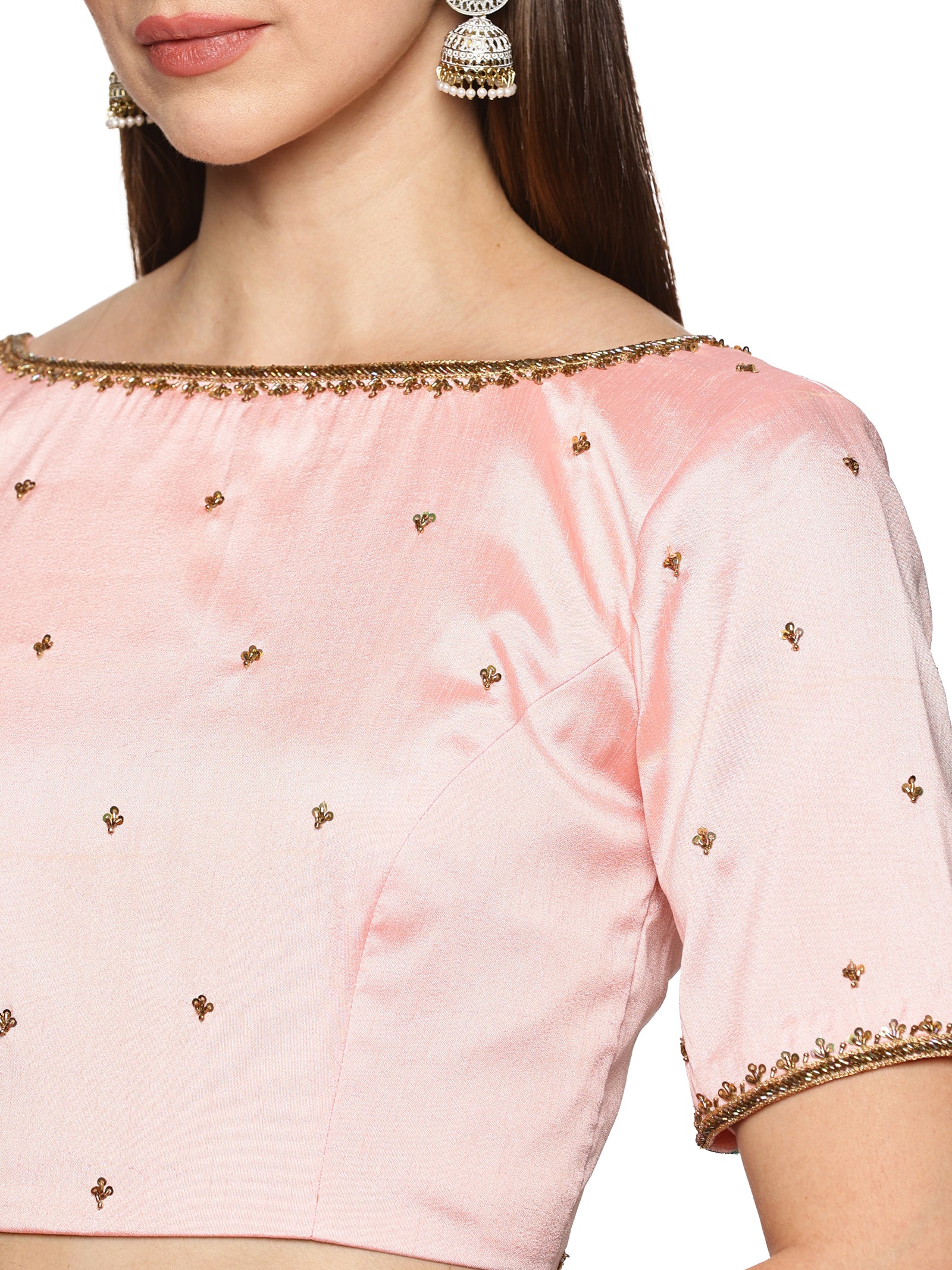 1.Hand Embordery blouse preety pink colour