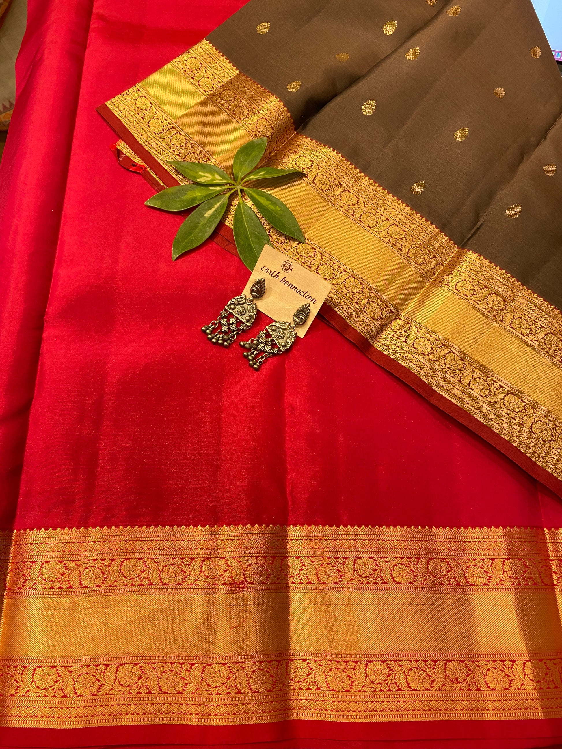 A Pure silk kanjivaram butta silk saree is luxurious handwoven silk saree. Is is characterized its by rich lustrous silk, intricate desinge and use of zari (gold thread) work. The ''butta refer's to the small , repeating motifs or pattern's woven to the body of the saree, often in zari or contrasts colours.