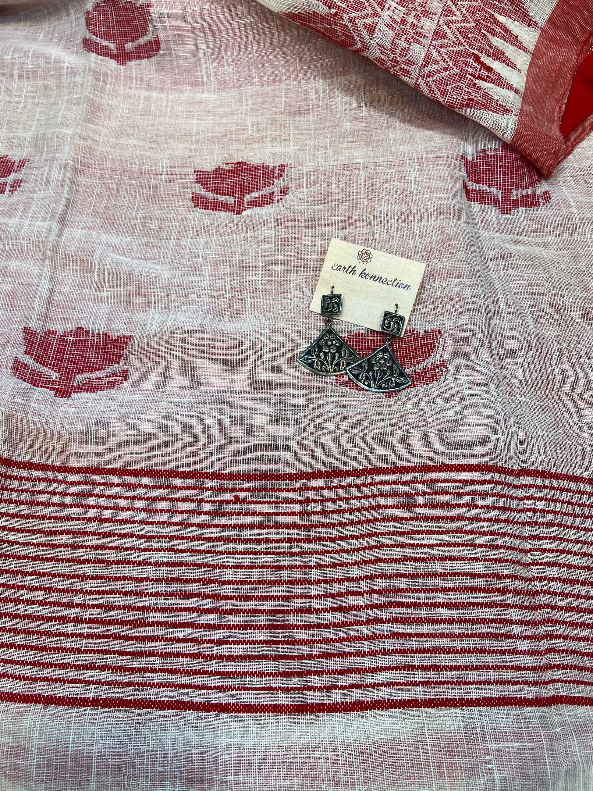 A linen saree is a traditional Indian garment made from the fibers of the flax plant, known for being lightweight, breathable, and comfortable. It has a natural, slightly textured look and is a popular choice for warm climates because of its ability to stay cool and wick away moisture.