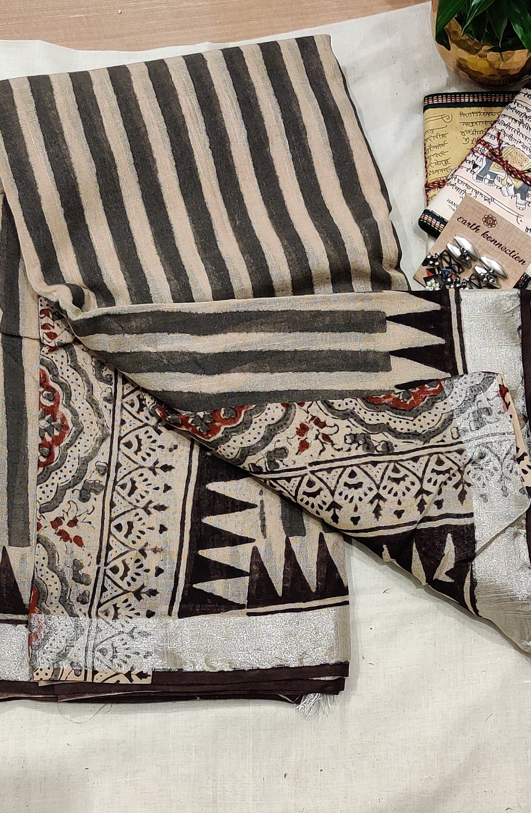A linen saree is a traditional Indian garment made from the fibers of the flax plant, known for being lightweight, breathable, and comfortable. It has a natural, slightly textured look and is a popular choice for warm climates because of its ability to stay cool and wick away moisture.