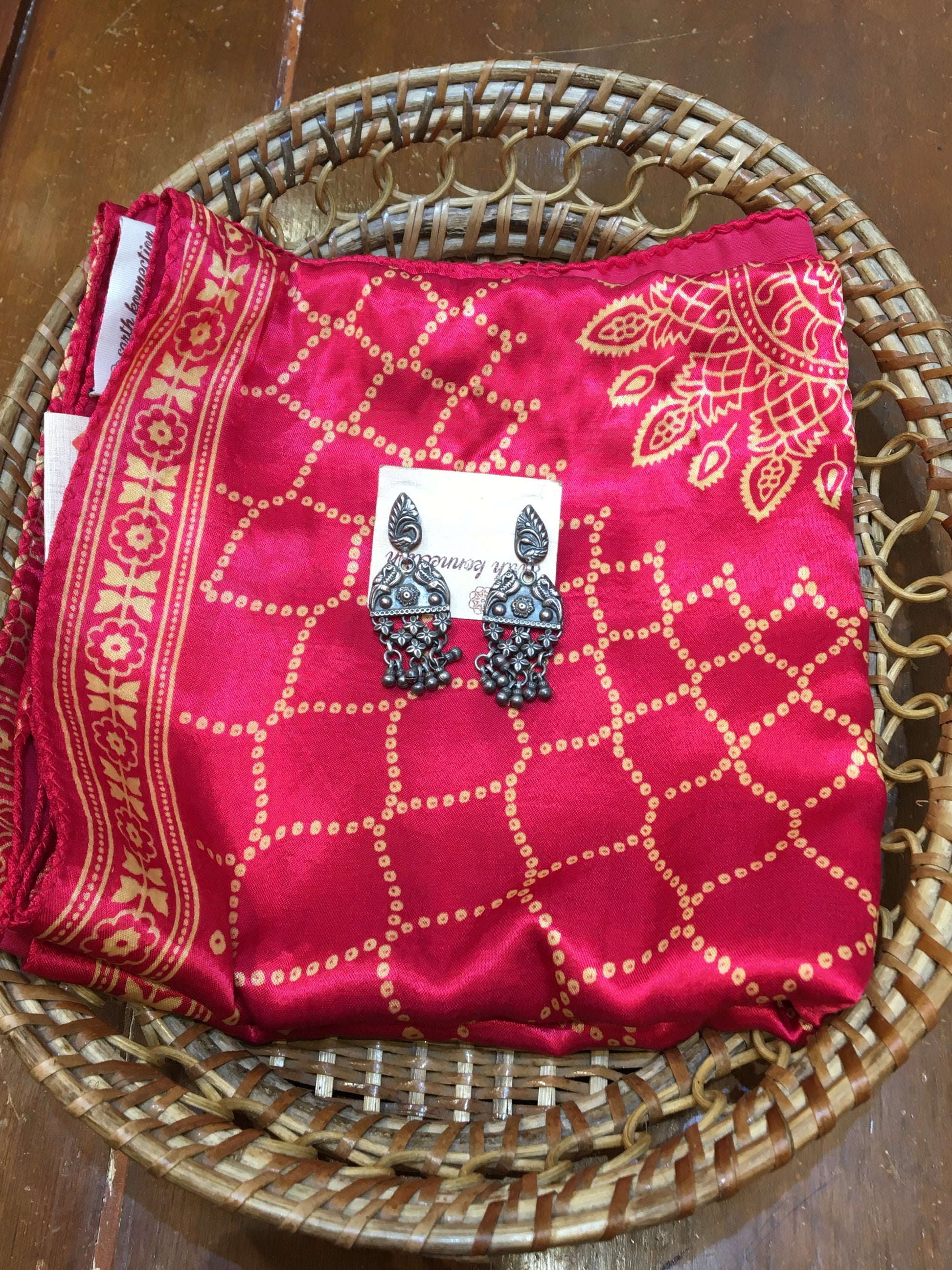 Ajrakh modal silk is a luxuries fabric featuring the intricate,traditional Ajrakh hand block printing technique on a soft and lustrous modal silk base.This combination creates a skin friendly fabric with a beautiful drape,making it a popular choice for dupatta.