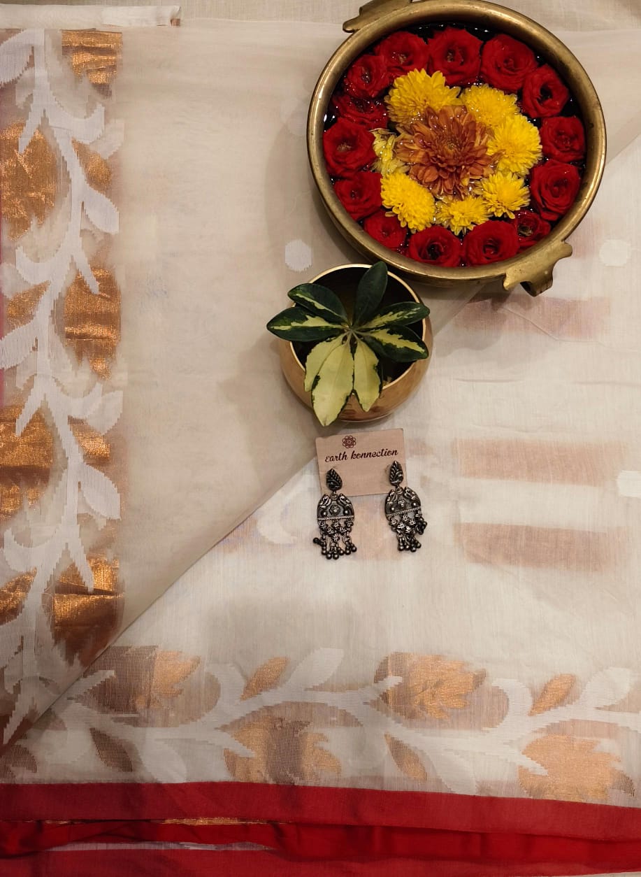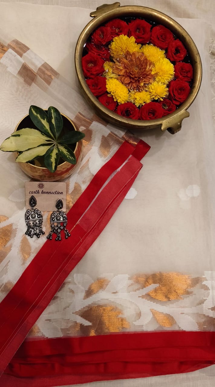 Bengali sarees are a beautiful representation of Bengal's reach cultural heritage and artistic traditions. Jamdani is touted as the most advance hand weaving technique in the world, in this saree has white and red border soft, beautiful saree.