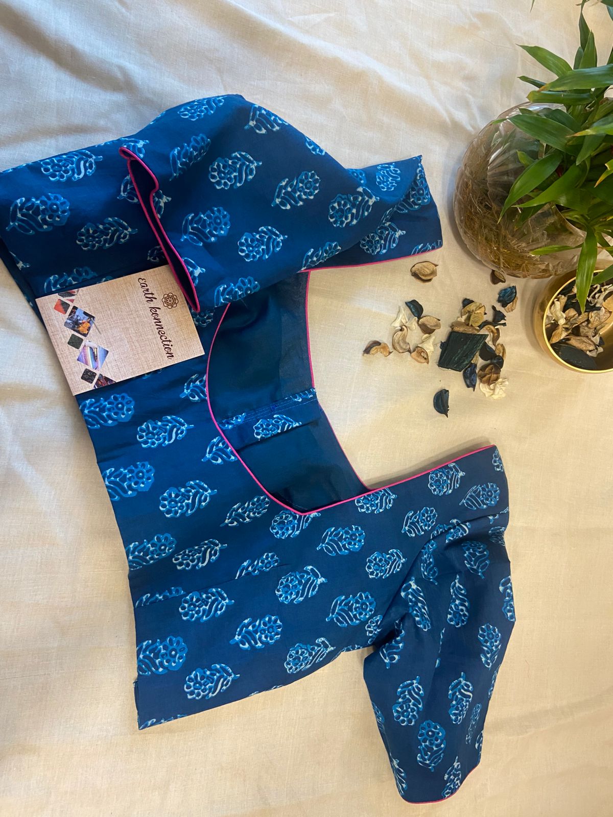 A Cotton blouse can be described as a versatile and comfortable garment made from natural cotton fabric. It's known for its breathability, softness and suitability for various occasions. Cotton blouses are often paired with sarees, skirts, or pants and come in a variety of styles, including classic designs with V- necks, hook closures, and semi-stitched fits.