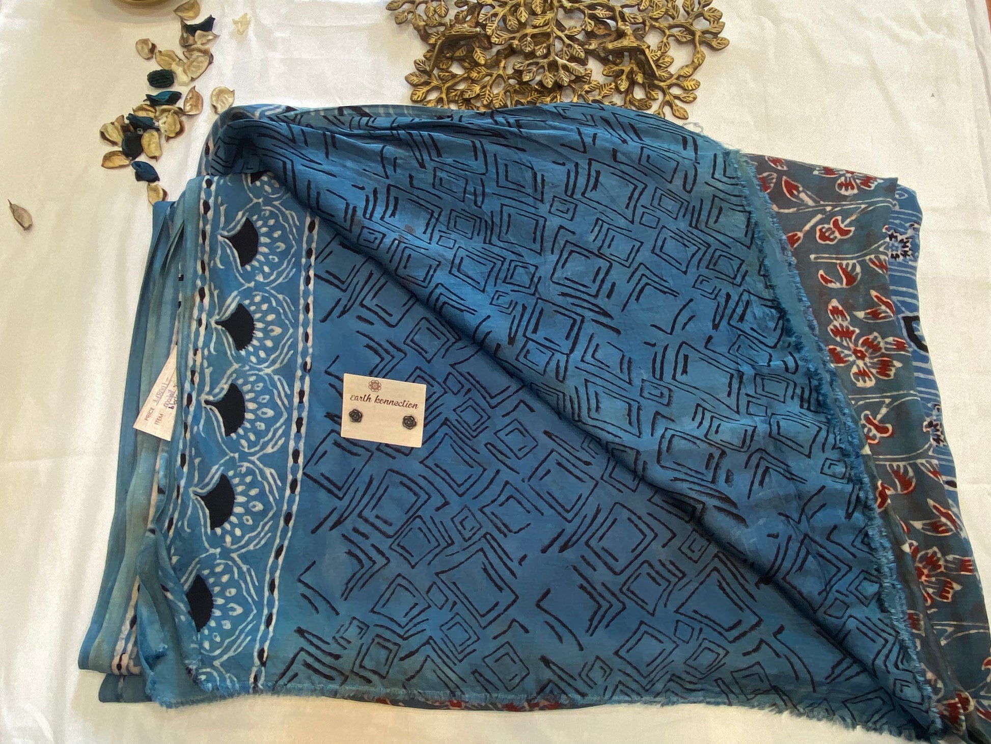 Modal silk sarees are a blend of modal, a semi-synthetic fiber made from beechwood pulp, and silk, which results in a soft, lightweight, and lustrous fabric. This combination creates a material that is more durable and easier to care for than pure silk, Ajrakh sarees, with roots tracing back to the Indus Valley civilization, represent the zenith of traditional block printing. Celebrated for their intricate geometric and floral patterns in deep, earthy tones like indigo, black, red, and mustard, these sarees embody a meticulous multi-stage dyeing and printing process.