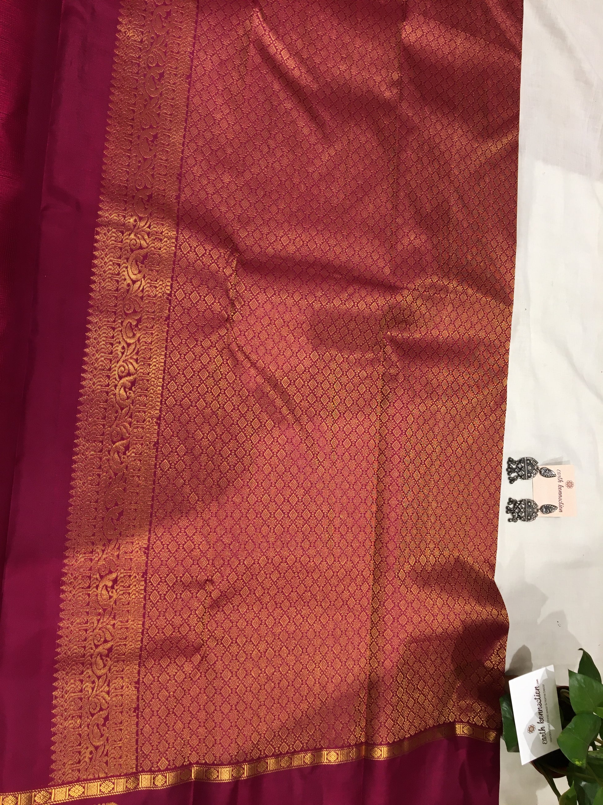 A pure Kanjivaram oost body butta saree is a beautiful blend of traditional elegance and artisanal finesse.