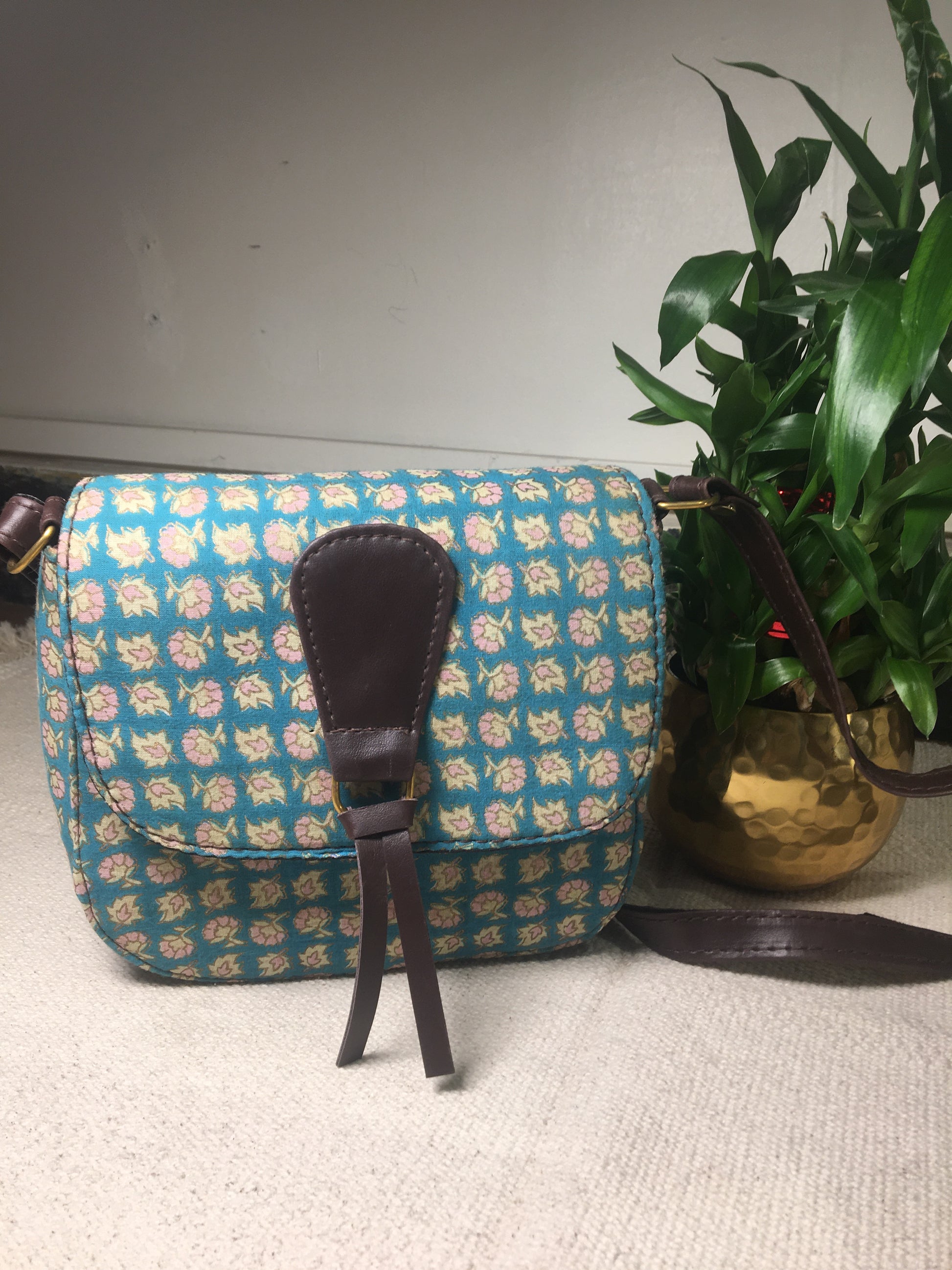 Here are some hand block printed sling bags, available in a range of materials including cotton, jute, and canvas leather accents.
